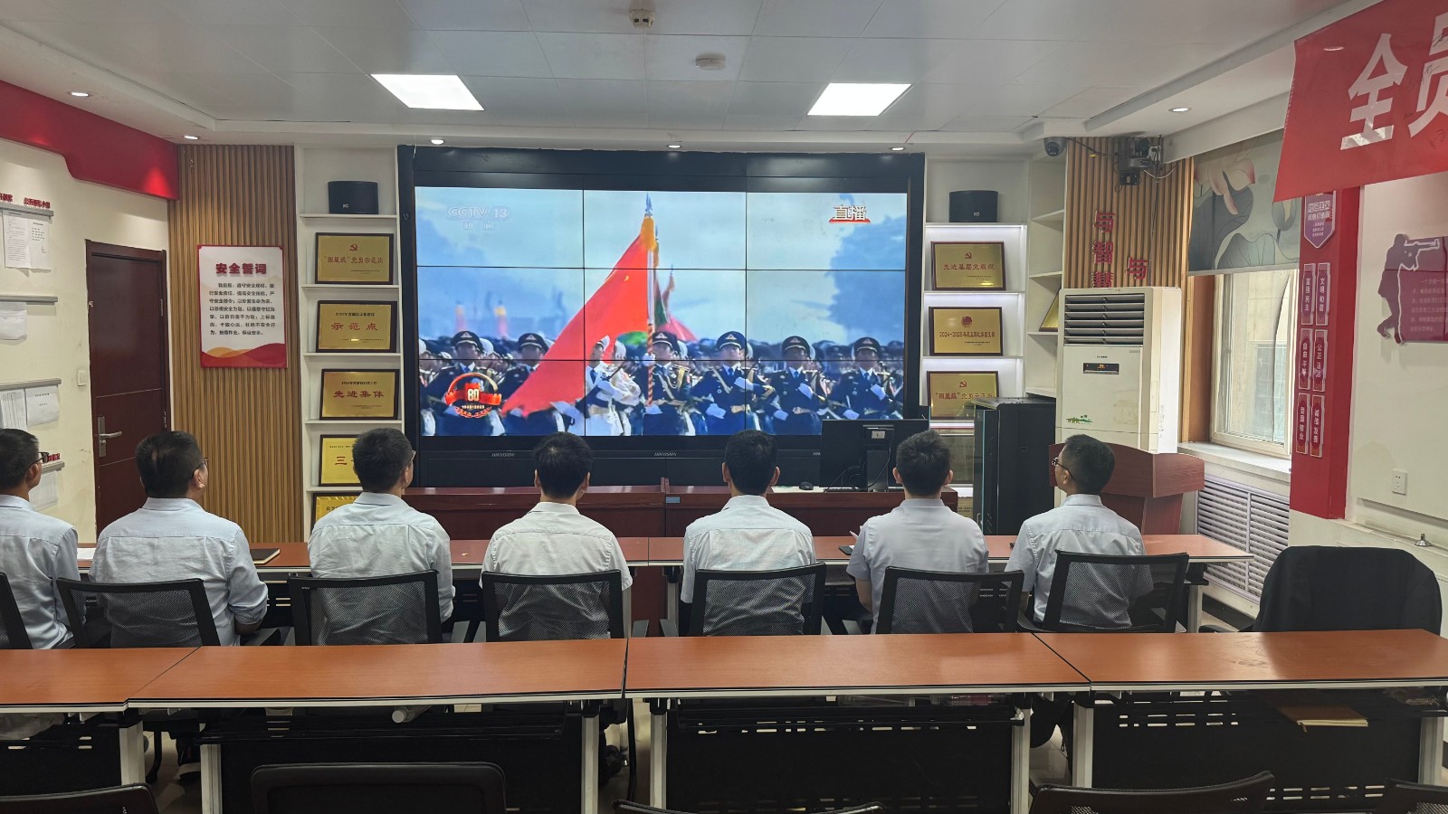歷史燭照未來,精神永續(xù)傳承。為深切緬懷在抗日戰(zhàn)爭中英勇獻(xiàn)身的革命先烈,大力弘揚(yáng)偉大的抗戰(zhàn)精神,引導(dǎo)全體黨員、職工銘記光輝歷史、堅(jiān)定理想信念、強(qiáng)化責(zé)任擔(dān)當(dāng),9月3日,機(jī)運(yùn)工區(qū)黨支部組織開展了“銘記歷史偉業(yè),傳承紅色基因”主題黨日活動(dòng),組織全體黨員集中觀看紀(jì)念中國人民抗日戰(zhàn)爭暨世界反法西斯戰(zhàn)爭勝利80周年閱兵儀式現(xiàn)場直播。上午九時(shí)整,機(jī)運(yùn)工區(qū)全體黨懷著無比崇敬與激動(dòng)的心情,目光齊聚屏幕。伴隨著激昂雄壯的國歌奏響,鮮艷的五星紅旗在天安門廣場冉冉升起,大家心潮澎湃,肅然起敬。隨后,規(guī)模宏大、氣勢磅礴的閱兵式正式開始。屏幕上,一個(gè)個(gè)整齊劃一、威武雄壯的徒步方隊(duì),邁著鏗鏘有力、撼人心魄的步伐走過檢閱臺(tái),堅(jiān)毅的眼神、挺拔的身姿,充分展現(xiàn)了新時(shí)代軍人聽黨指揮的忠誠品格和能打勝仗的過硬本領(lǐng);一列列代表著國家科技實(shí)力與國防現(xiàn)代化建設(shè)最新成果的裝備方隊(duì),鐵流滾滾,氣勢如虹,尖端武器依次亮相,彰顯了捍衛(wèi)國家主權(quán)、安全、發(fā)展利益的堅(jiān)定決心與強(qiáng)大能力;雄鷹呼嘯,劃破長空,戰(zhàn)機(jī)編隊(duì)以精準(zhǔn)的隊(duì)形和磅礴的氣勢接受檢閱,描繪出壯美的藍(lán)天畫卷,宣示著捍衛(wèi)國家領(lǐng)空安全的鋼鐵意志。整個(gè)閱兵過程,秩序井然、威武雄壯、氣勢恢宏,生動(dòng)詮釋了人民軍隊(duì)“聽黨指揮、能打勝仗、作風(fēng)優(yōu)良”的強(qiáng)軍目標(biāo),全方位展示了在黨的堅(jiān)強(qiáng)領(lǐng)導(dǎo)下,國家日益強(qiáng)大的綜合國力和維護(hù)世界和平的堅(jiān)定信念。屏幕前,黨員們?nèi)褙炞?,無不被這震撼人心的場面所感染,民族自豪感與榮譽(yù)感油然而生,現(xiàn)場不時(shí)響起由衷的贊嘆和熱烈的掌聲。通過本次“銘記歷史偉業(yè),傳承紅色基因”主題黨日活動(dòng),機(jī)運(yùn)工區(qū)黨支部全體黨員經(jīng)歷了一次深刻的精神淬煉與思想升華。大家的歷史使命感、民族自豪感、崗位責(zé)任感得到顯著增強(qiáng),紛紛表示以更加飽滿昂揚(yáng)的精神狀態(tài)、更加求真務(wù)實(shí)的工作作風(fēng)、更加開拓創(chuàng)新的進(jìn)取意識(shí),恪盡職守,銳意進(jìn)取,全力以赴保障原煤運(yùn)輸安全高效,為工區(qū)及公司的持續(xù)高質(zhì)量發(fā)展貢獻(xiàn)全部力量!